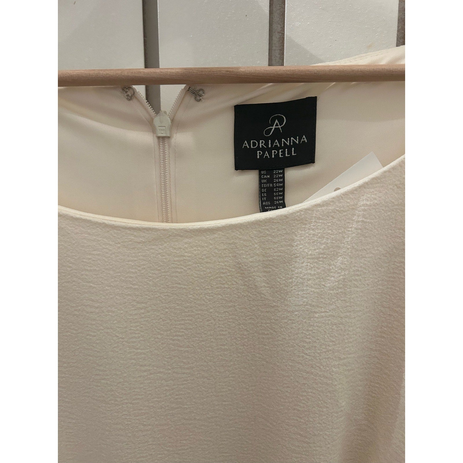 Cream dress with black accents from Adrianna Papell size 22. Perfect dress for a formal occasion such as an anniversary, vacation dinner, or semi-formal event. Fit and flare style that comes in at the hips, and flares out around the hem.