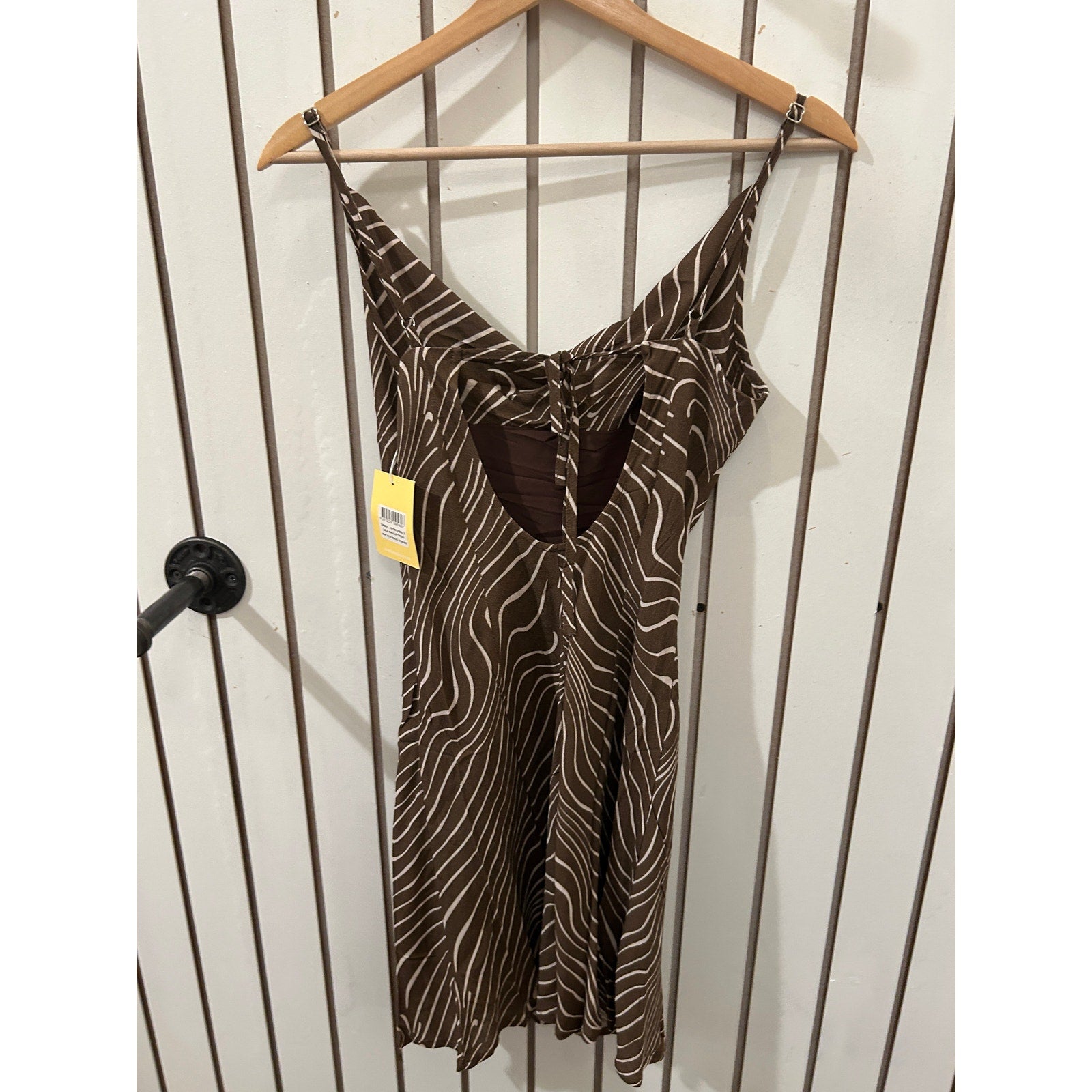This is a Charlie Holiday dress sold at Anthropologie. The dress features a stylish brown and cream zebra print and has spaghetti straps. It's brand new with tags, making it a perfect addition to your wardrobe for summer or fall. This Lola Zebra Dress from Charlie Holiday is a size S and is perfect for any occasion.