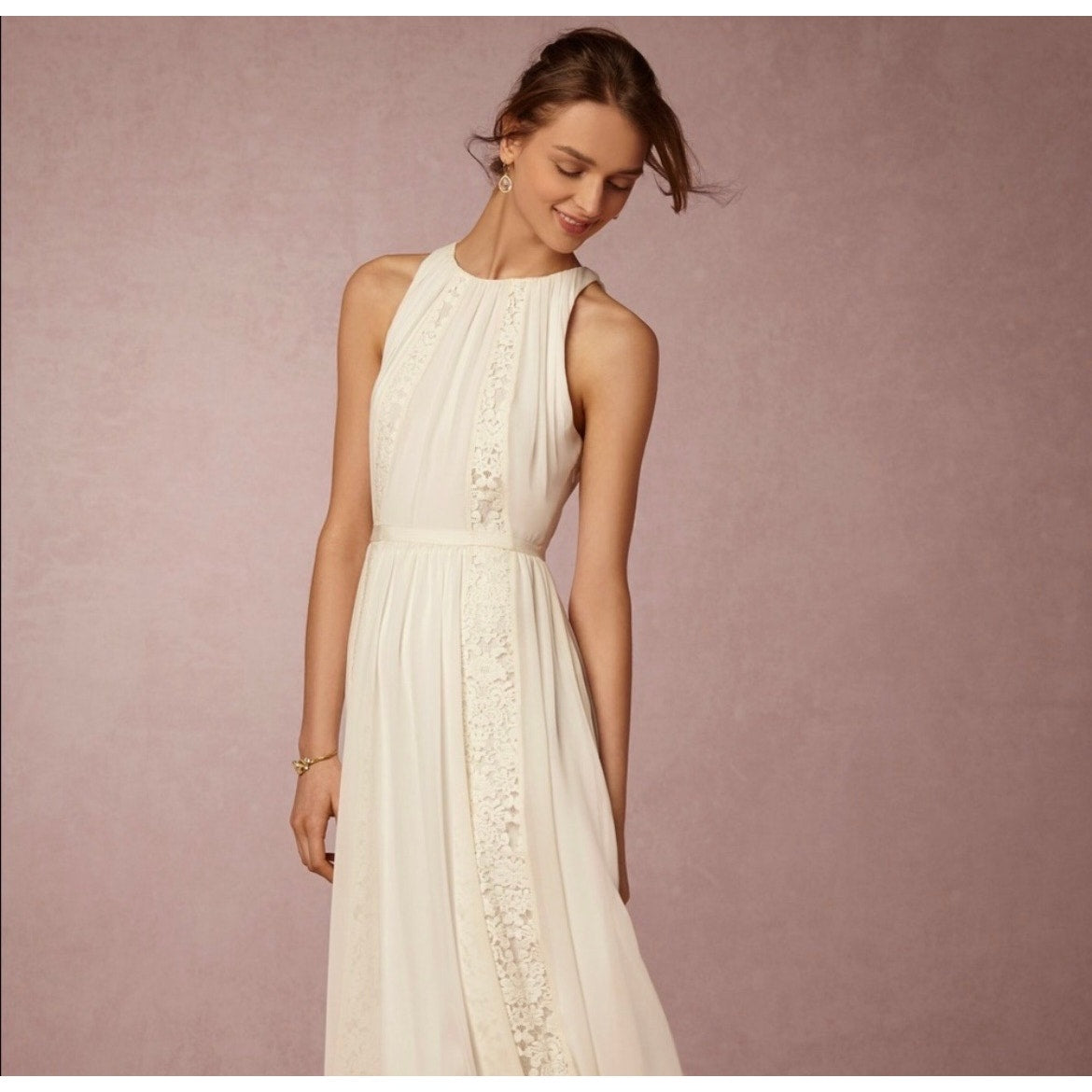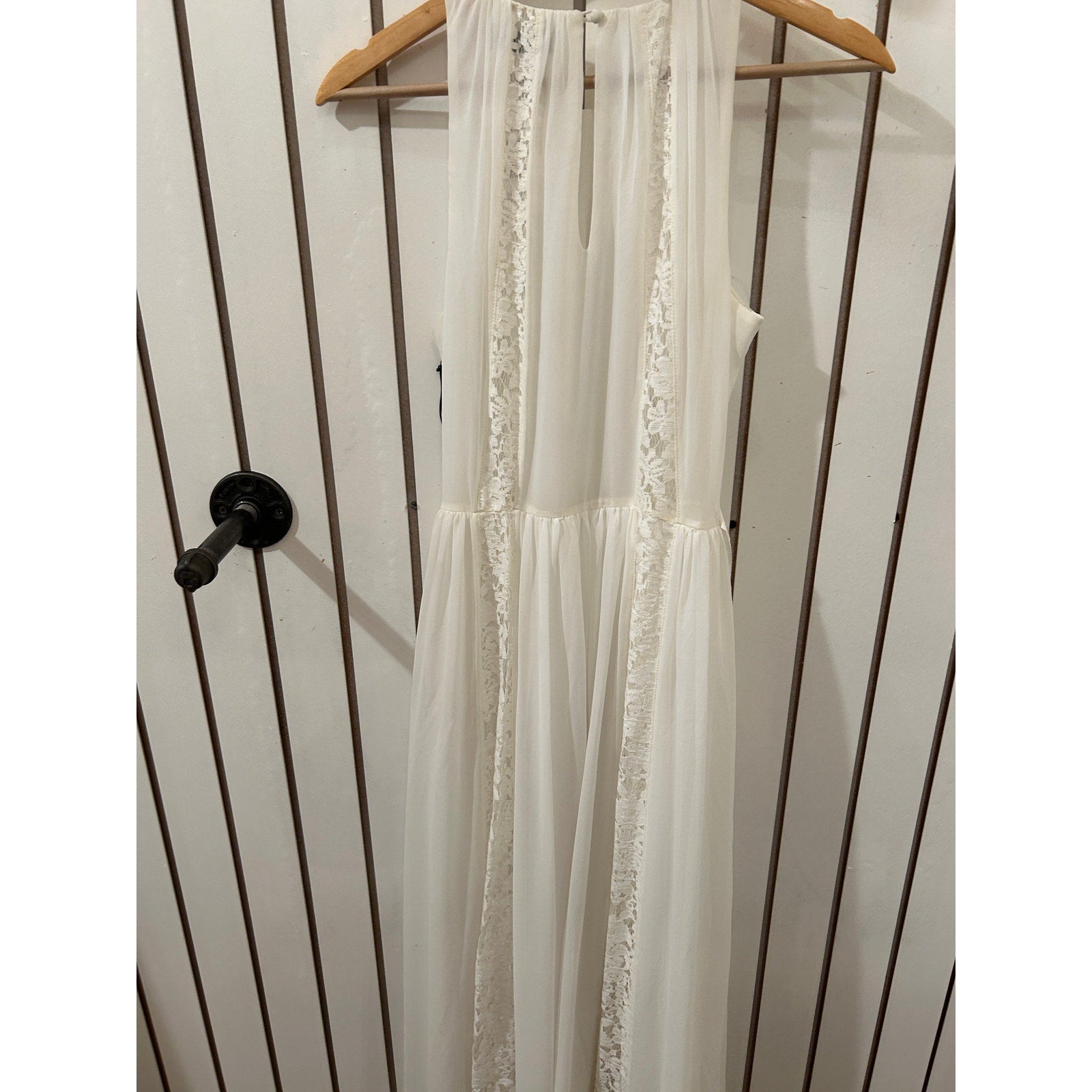 Elegant and timeless, this Bailey/44 white maxi column dress features delicate lace accents for a romantic touch. Perfect for special occasions, beach weddings, or evening events, it offers a sleek silhouette with effortless sophistication.