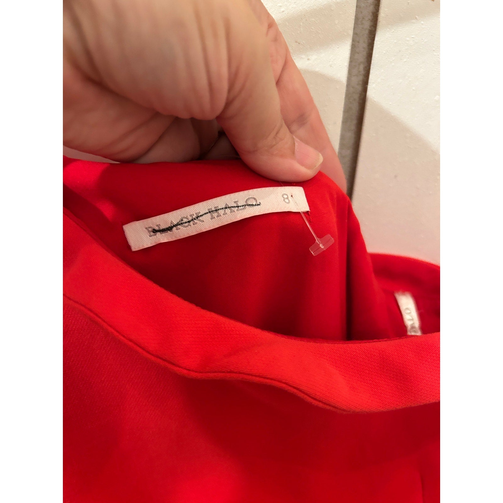 Turn heads in this striking bright red Black Halo dress, featuring a one-shoulder neckline and elegant ruffle detail. The structured silhouette flatters your figure, making it a bold and sophisticated choice for any special occasion.
