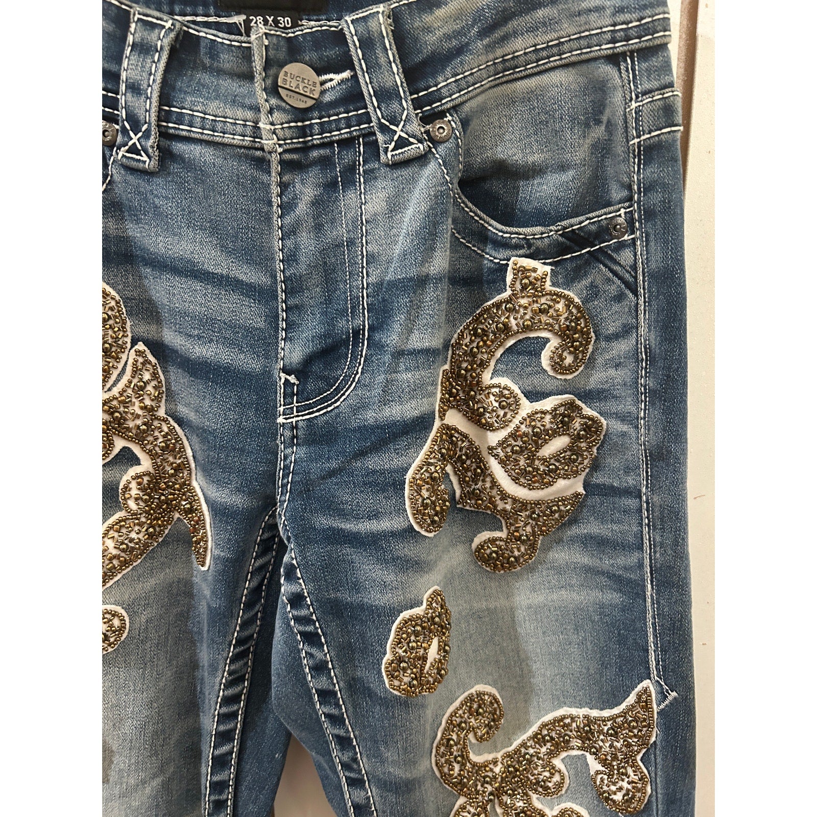 Stand out in these one-of-a-kind Buckle Black bootcut jeans, size 28x30. Featuring unique embellishments and a flattering bootcut silhouette, these jeans blend edgy details with classic denim style—perfect for adding personality to your everyday look.