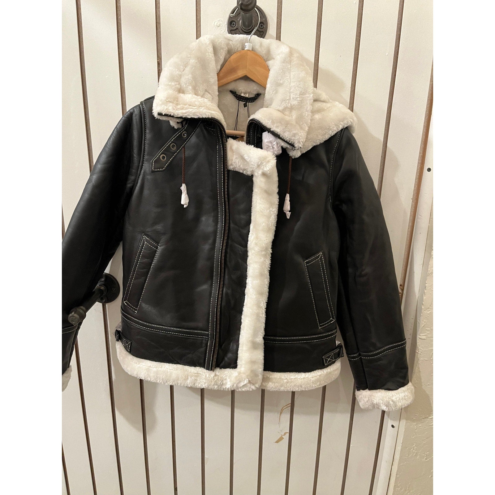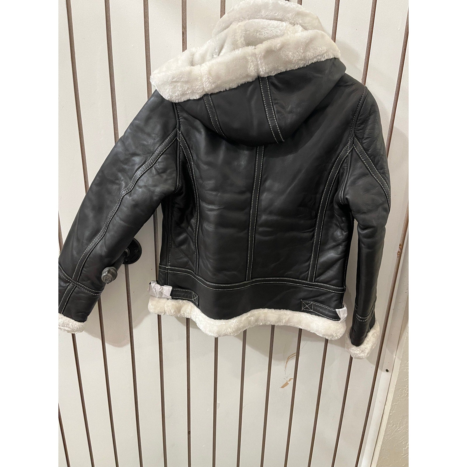 Decrum Genuine Leather Jacket-Mary Dark Brown with White Sherling SizeXS NWT