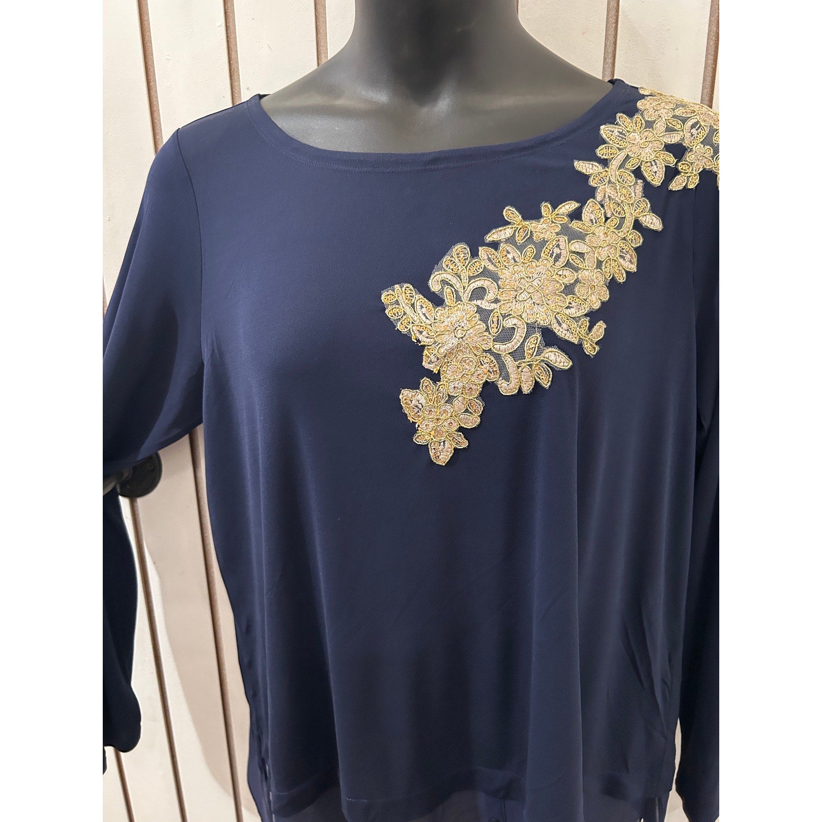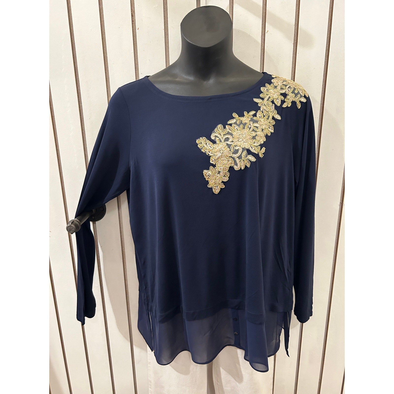 Elegant and timeless, this Eileen Fisher dark blue silk blouse features subtle embellishments for a touch of understated sparkle. Crafted from luxurious silk, it offers a relaxed yet refined silhouette—perfect for dressing up your workwear or adding sophistication to an evening look.