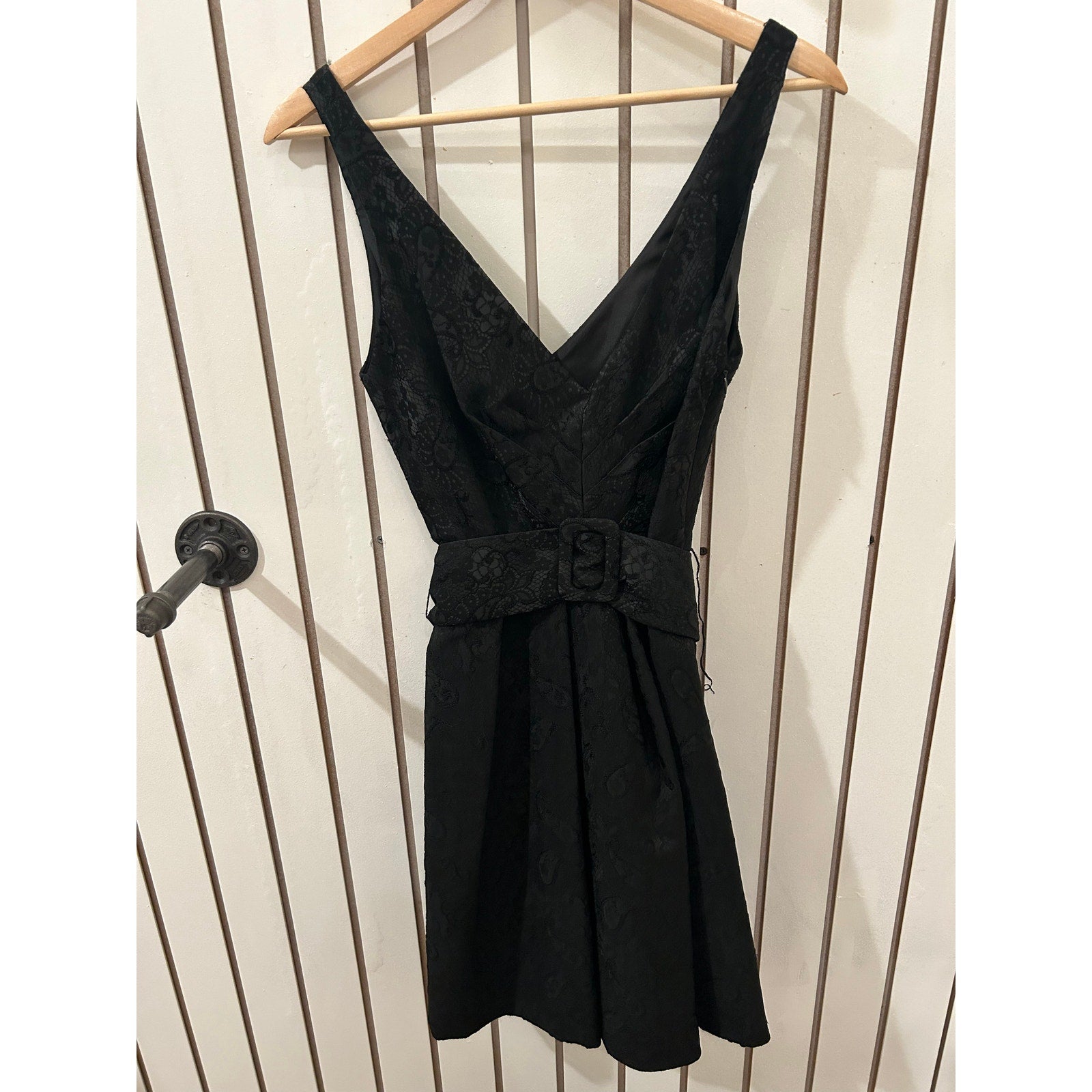 Black stunning Eva Franco dress size 0, stunning classic retro style with belt to create a fit and flare style. Has a black pattern on dress - such a statement dress!