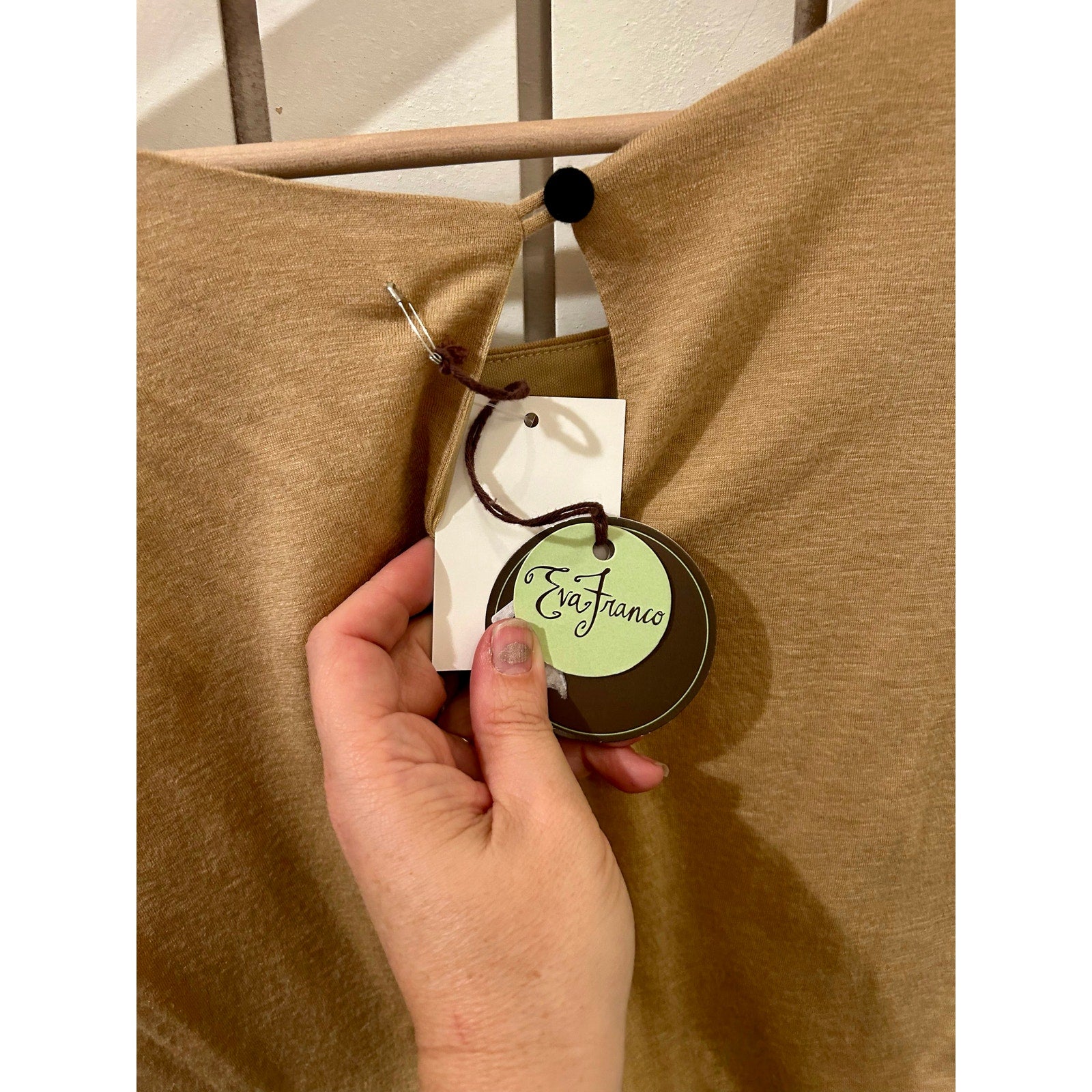 This Eva Franco tan sundress is the perfect blend of casual sophistication and effortless comfort. Crafted from an ultra-soft fabric, it drapes beautifully for a flattering fit. The black rivet details add a chic, modern touch, making this dress stand out with subtle edge. A versatile transitional piece, it’s perfect for layering with a jacket in cooler weather or wearing solo as the days warm up. Whether you’re strolling through the city or heading to brunch, this dress is a timeless addition to your spring wardrobe!