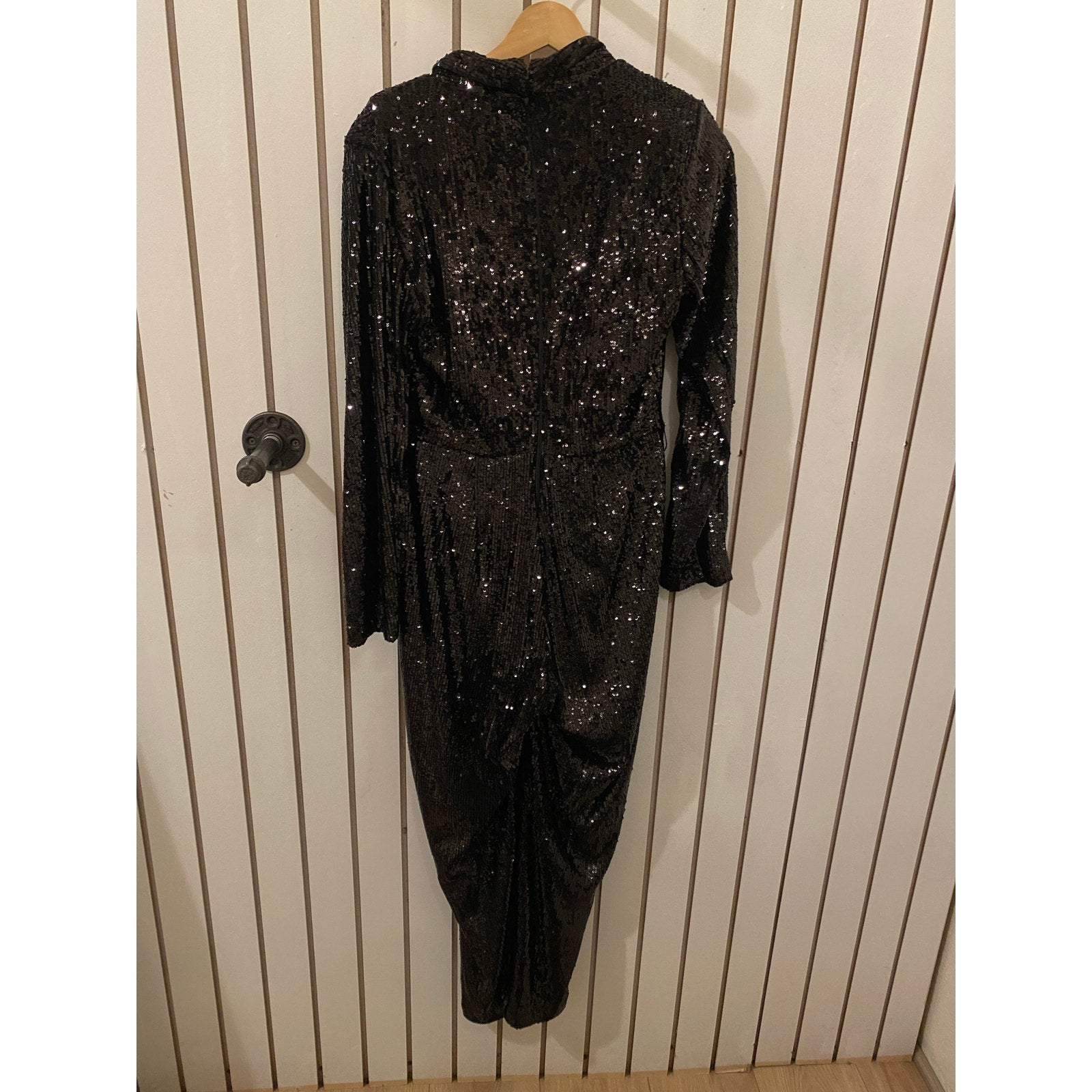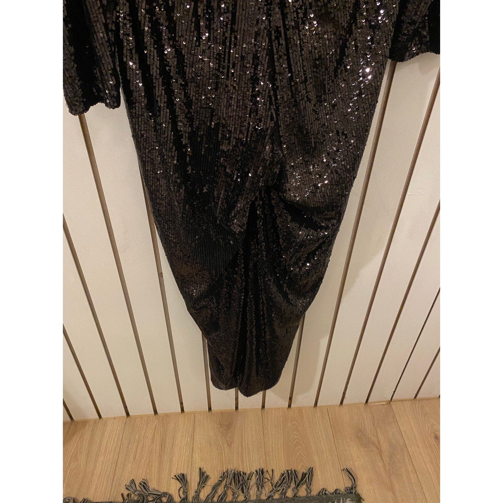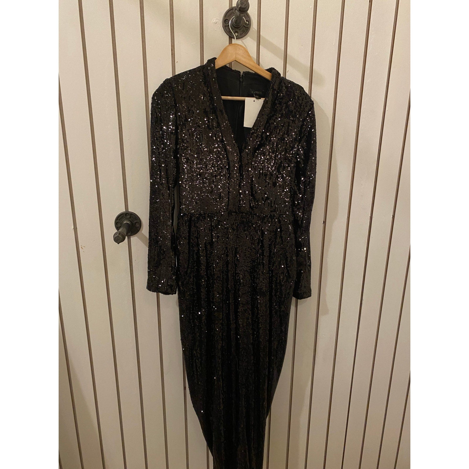 Turn heads in this stunning Express black sequin jumpsuit—the perfect blend of glam and sophistication! Featuring an all-over sequin design that catches the light beautifully, this sleek one-piece is designed for a figure-flattering fit with a cinched waist and wide-leg silhouette. The long sleeves and V-neckline add a touch of elegance, while the hidden back zipper ensures a seamless look.