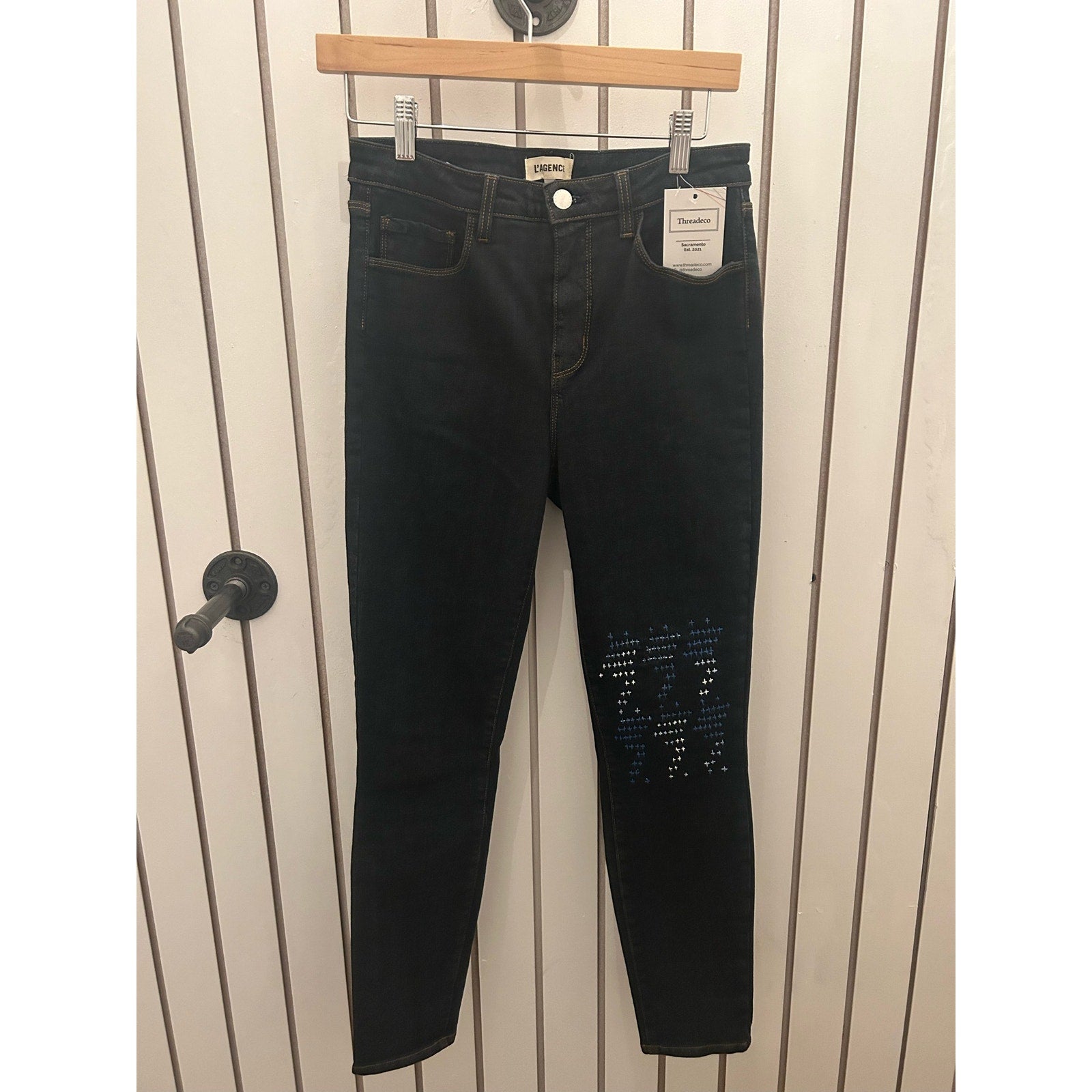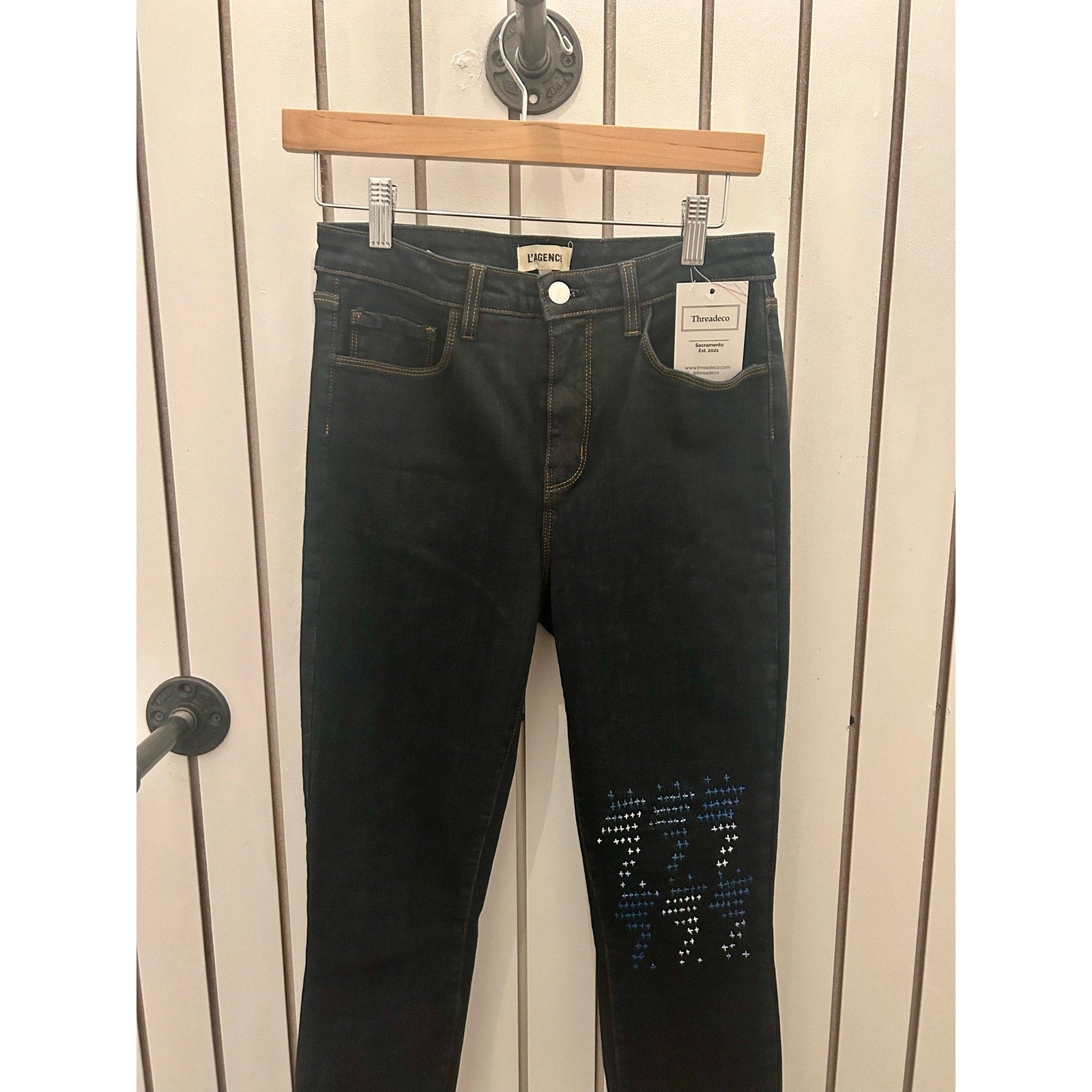 High end L'Agence Denim Jeans Size 25, original price of jeans $200. These are hand embroidered in the knee and the back of the jeans in between the pockets. Super stylish and one-of-a-kind!