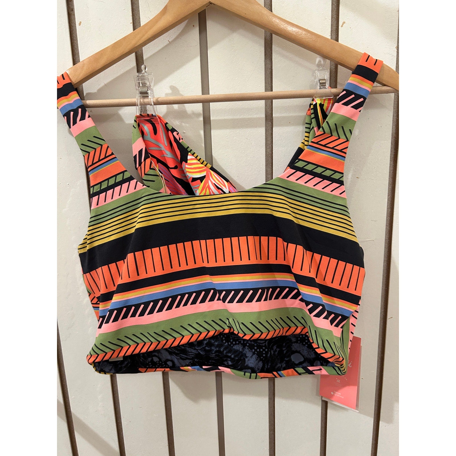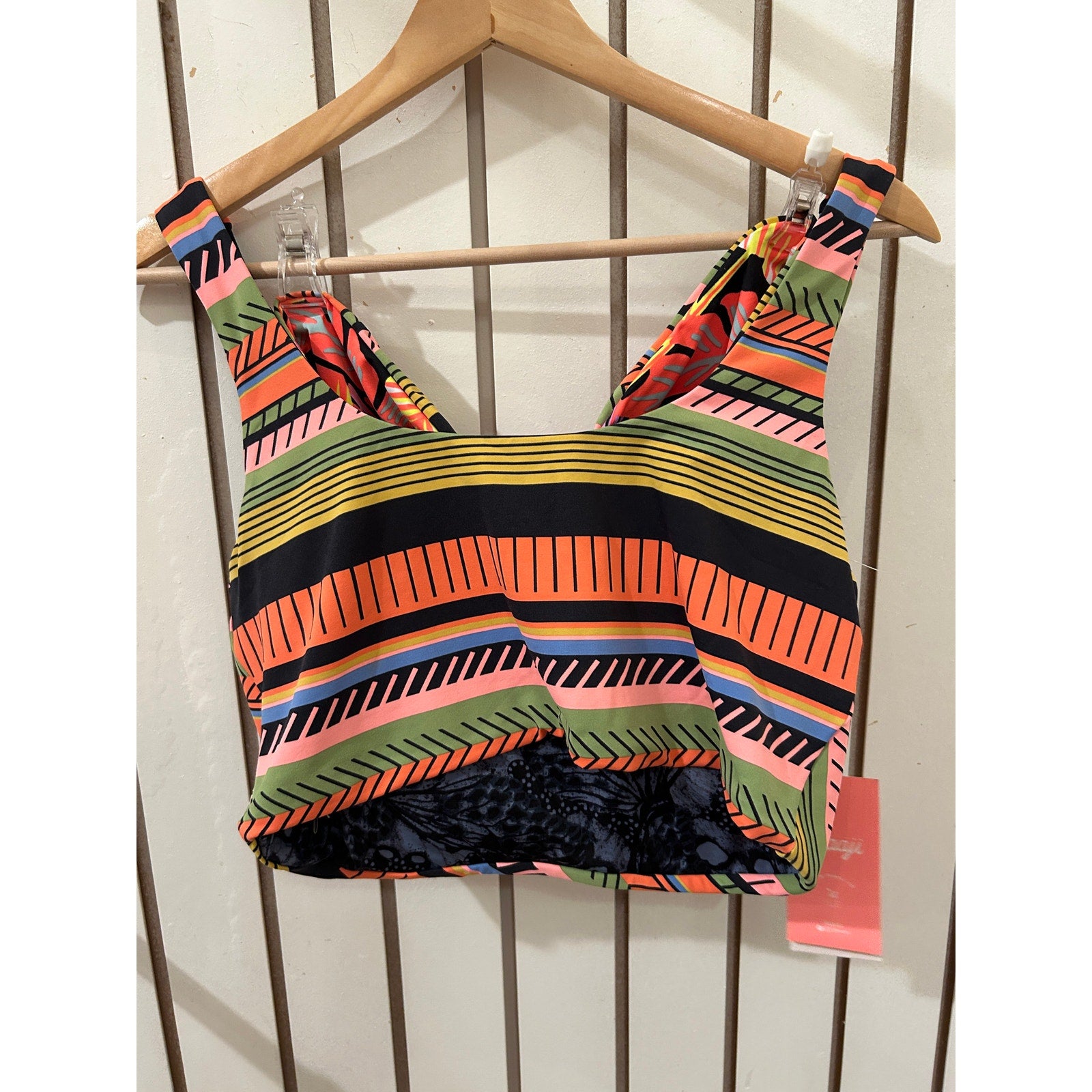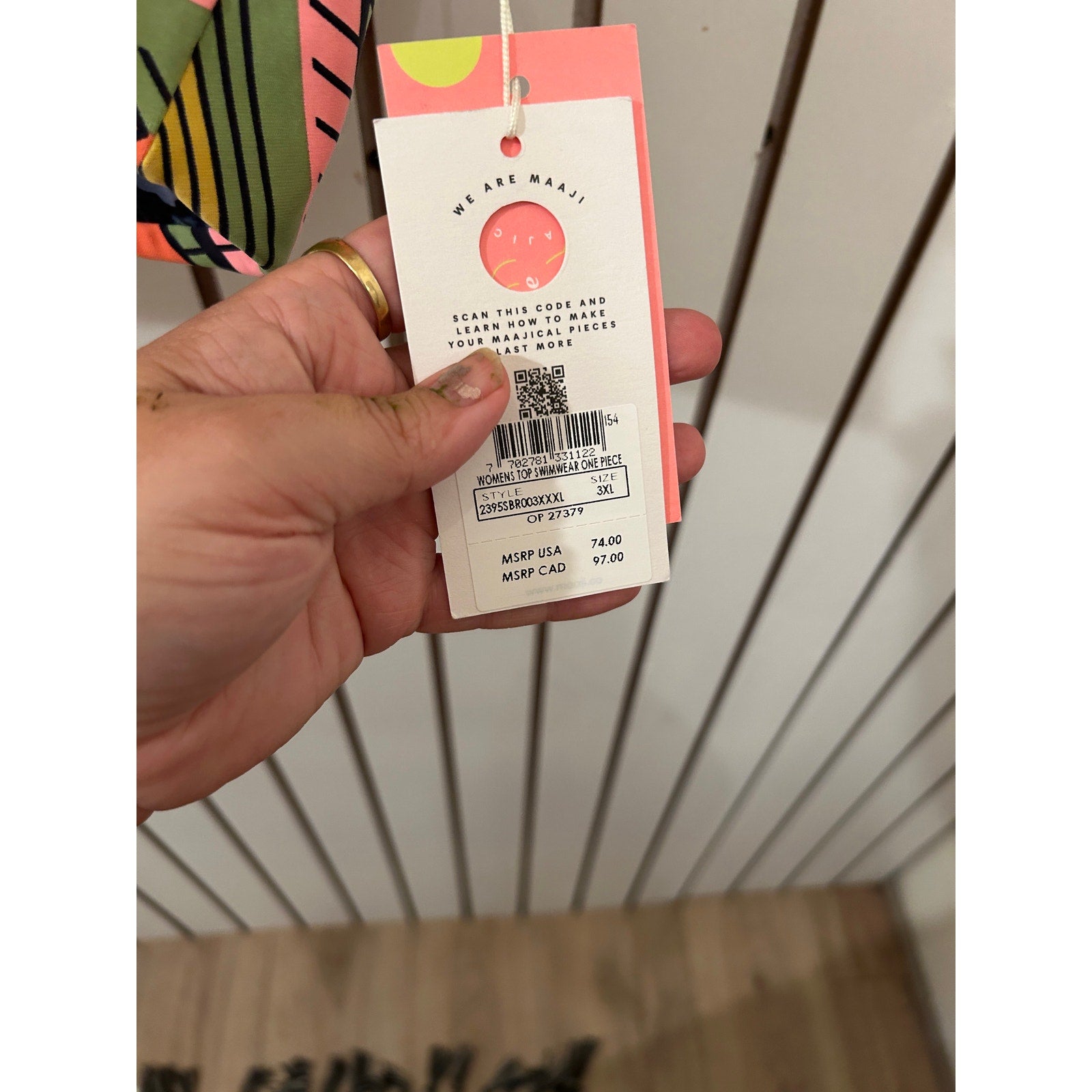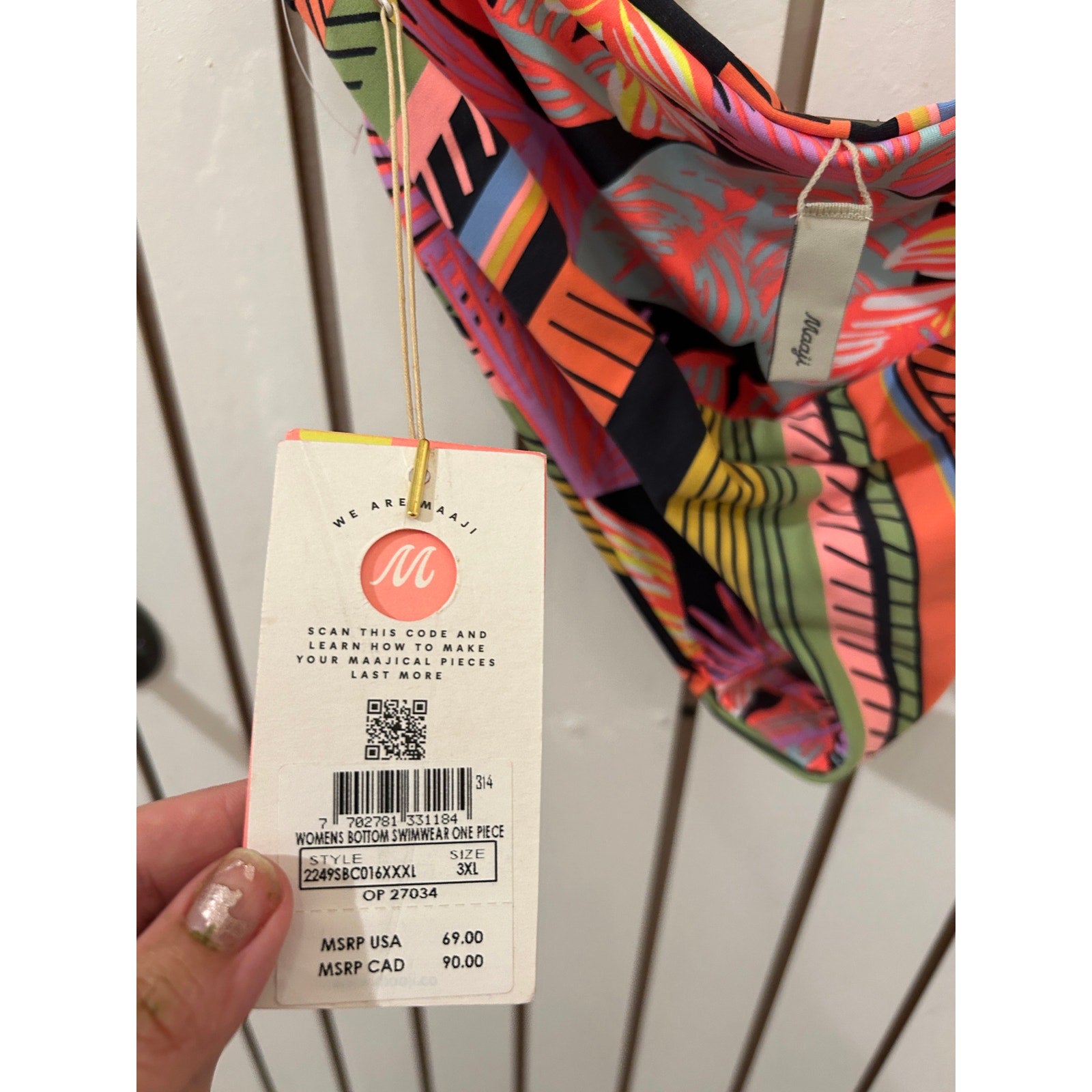 Bold and colorful, this Maaji 2-piece bikini in size 3XL features a vibrant mix of orange, green, yellow, pink, blue, and black in a playful pattern design. With a flattering fit and standout style, it’s perfect for poolside lounging or beachside adventures.