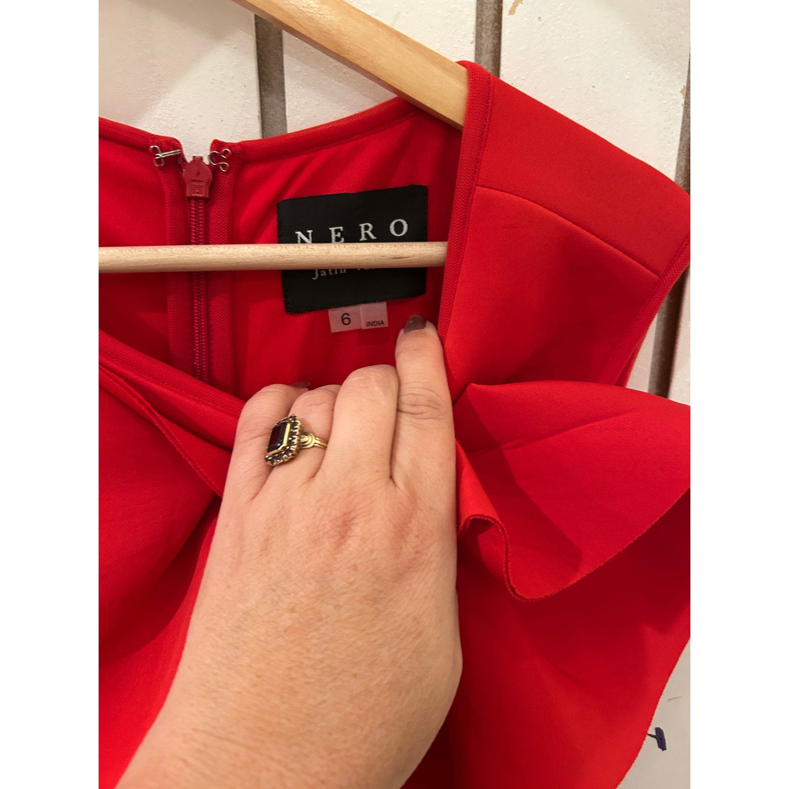 Command the room in the Red Nero dress by Jatim Varna — a bold, sculptural silhouette crafted to turn heads. With its striking crimson hue and clean, architectural lines, this piece blends fierce elegance with modern minimalism. Whether you're headed to an art gallery opening or an evening event, this dress speaks fluent power move. Style with minimal accessories and let the dress do the talking.