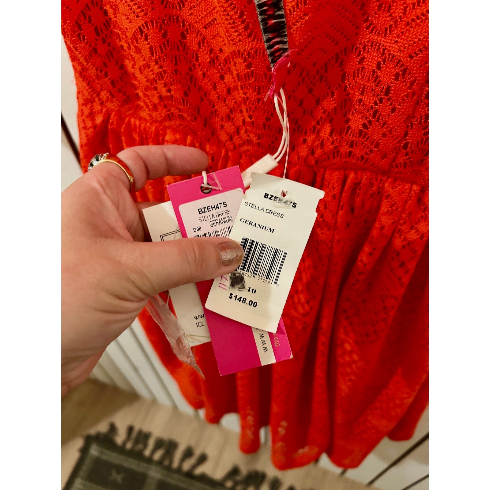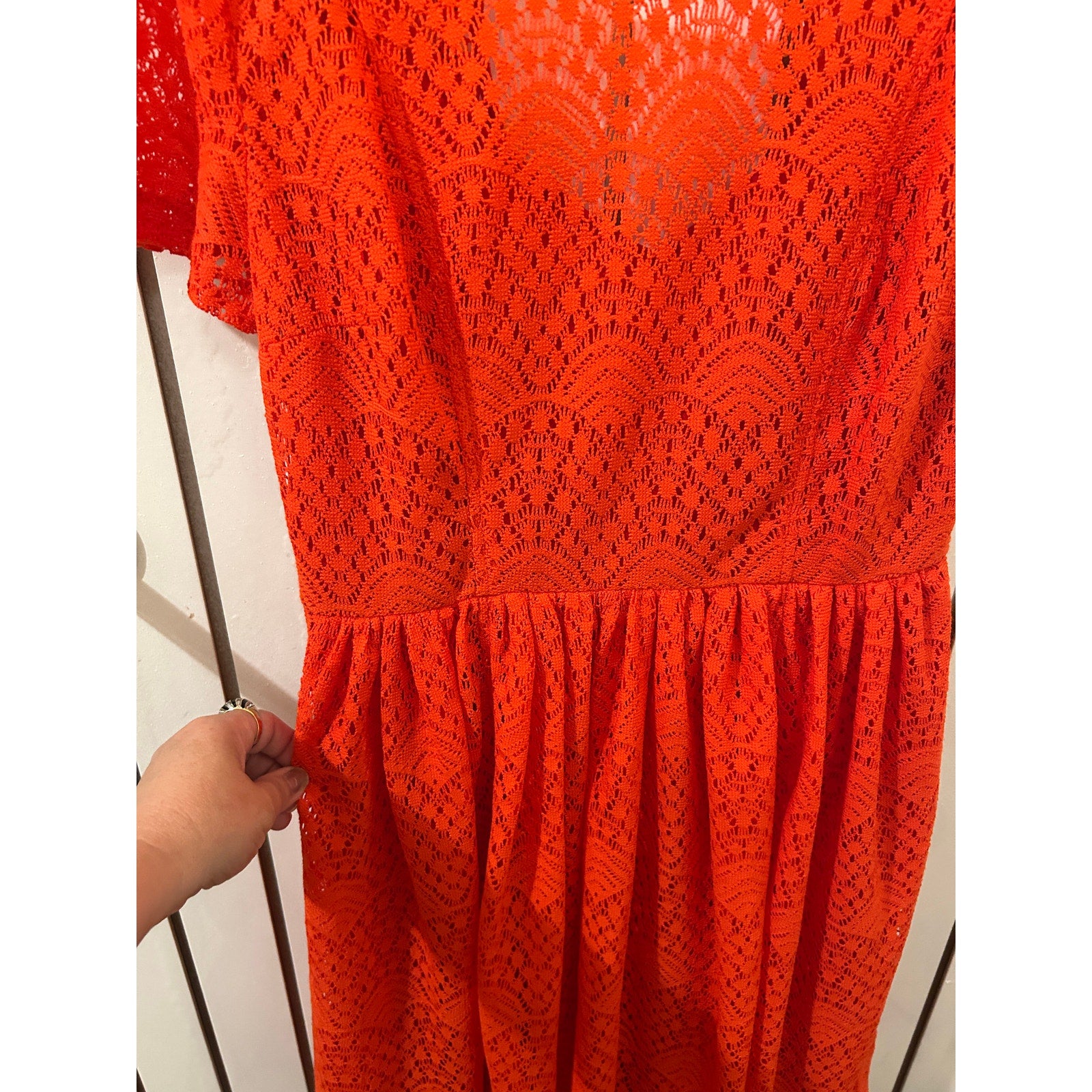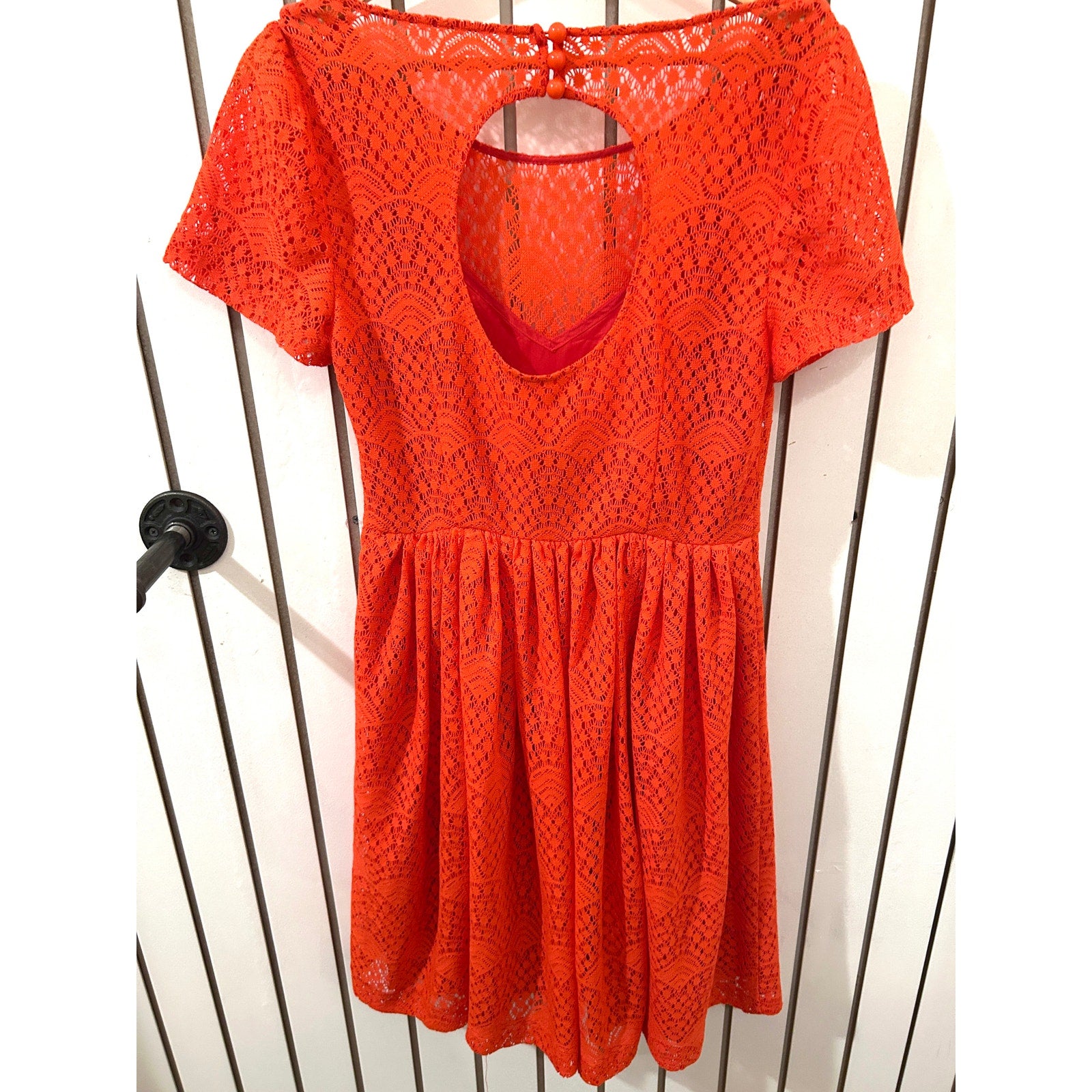 Vibrant and flirty, this Plenty by Tracy Reese dress features bold orange lace and a playful cutout back. Perfect for weddings, parties, or a summer night out, its flattering silhouette and eye-catching details make it a standout piece in any wardrobe.