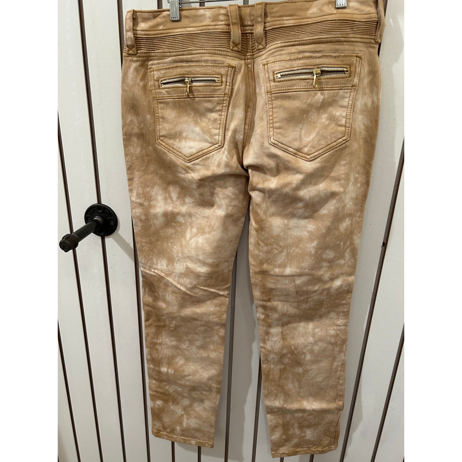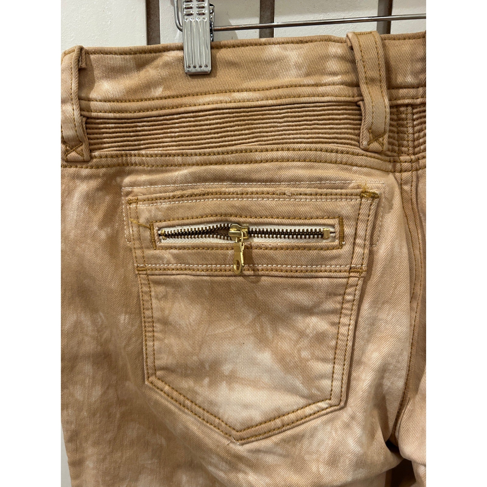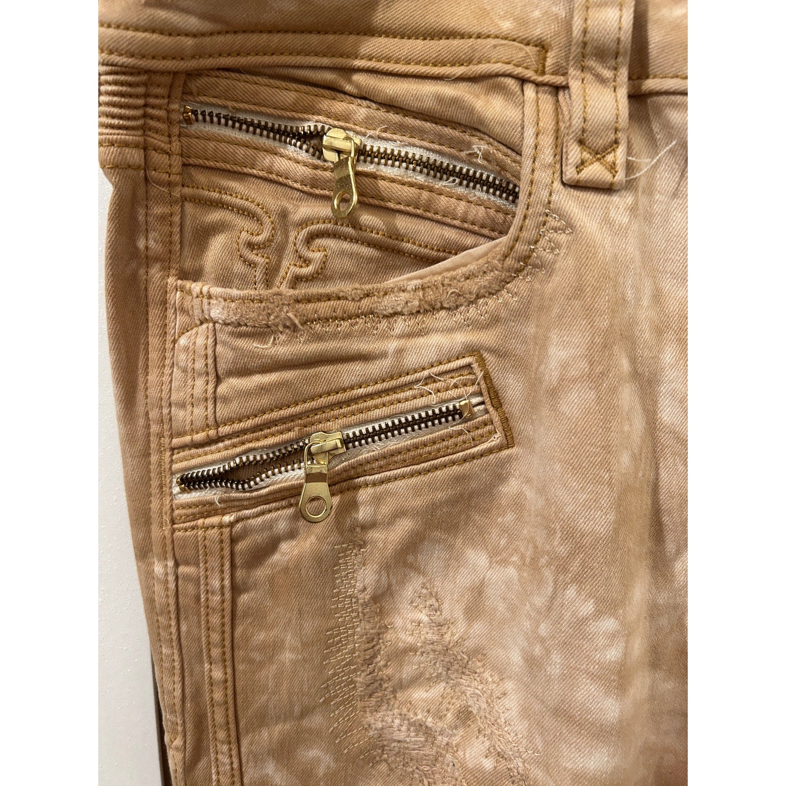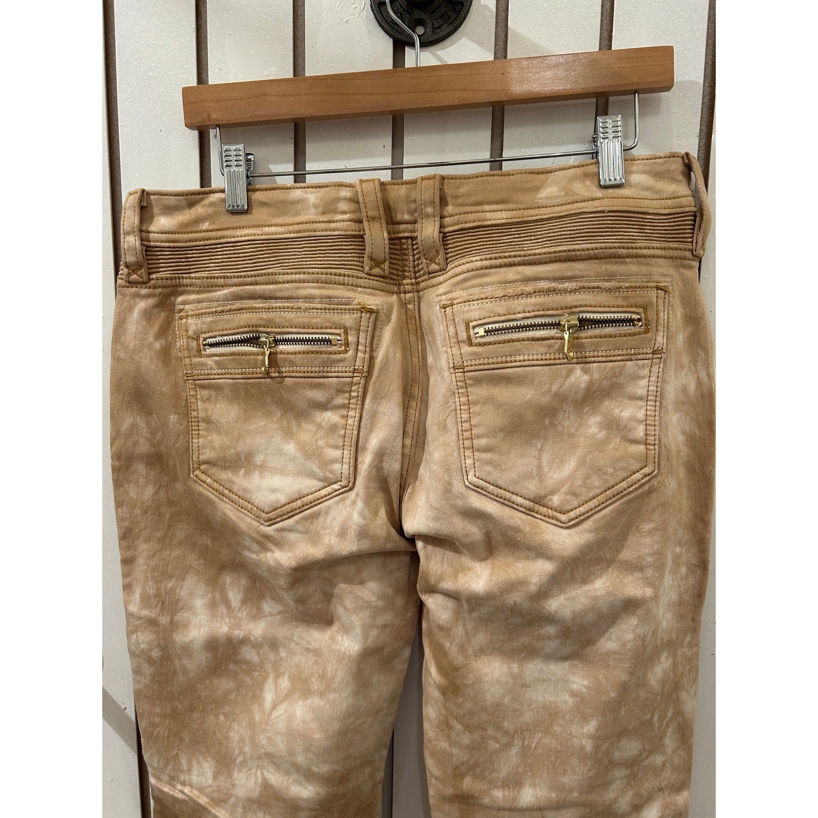 Edgy meets sleek in these Rock Revival Moto Jeans in a versatile tan shade. Featuring zipper pockets on the front and back, and a straight leg skinny fit, these size 32 jeans add a bold, moto-inspired touch to your everyday style. Perfect for those who love standout denim with attitude.