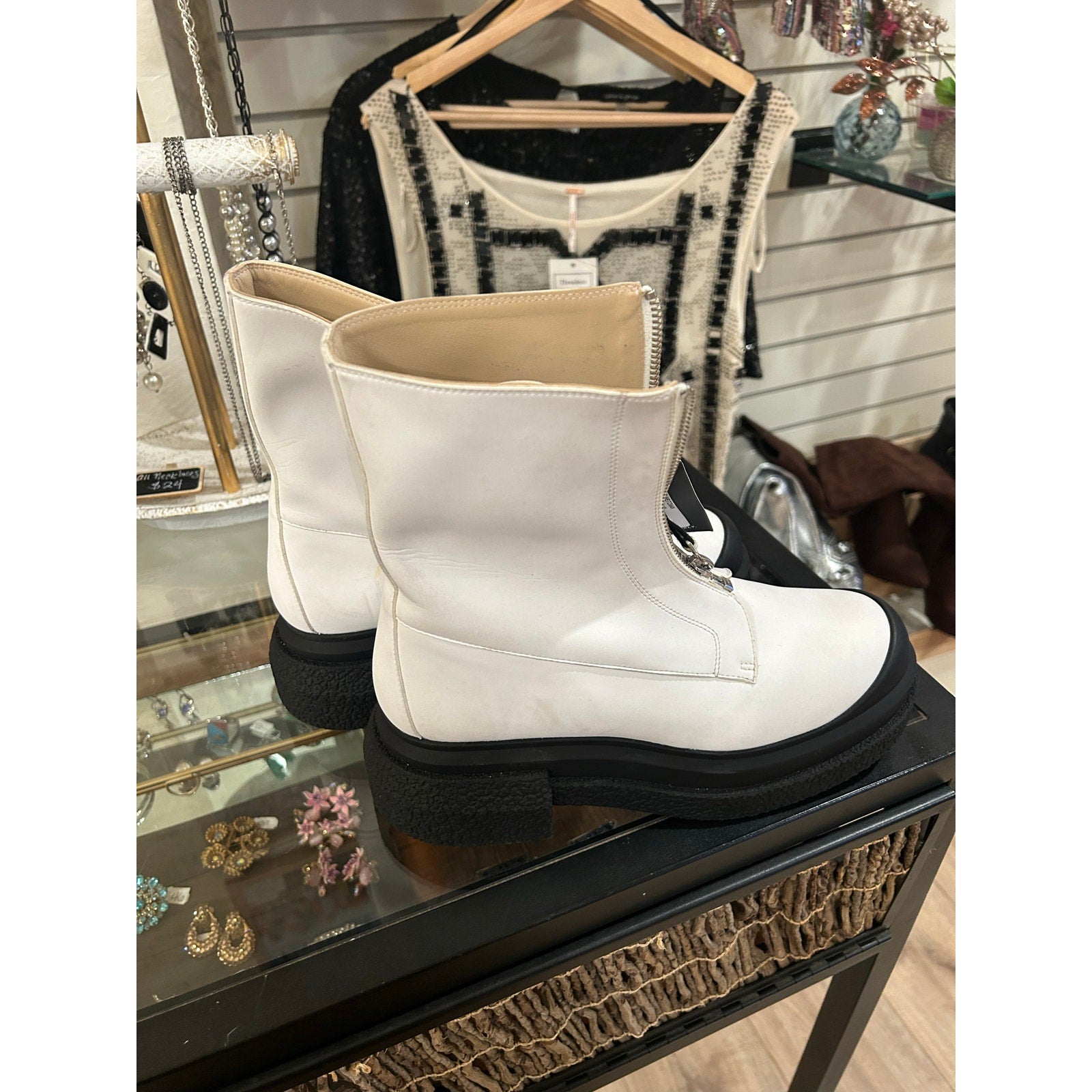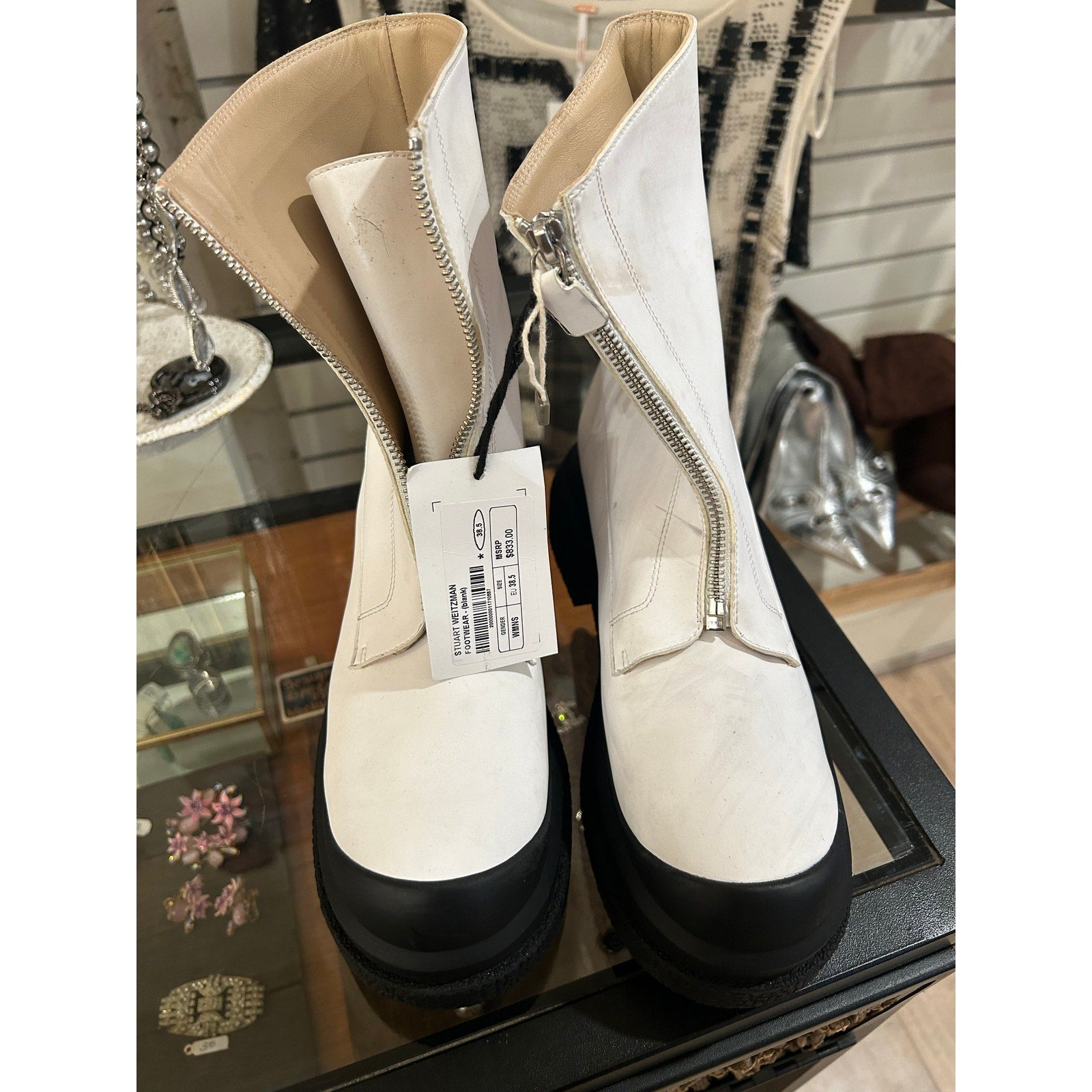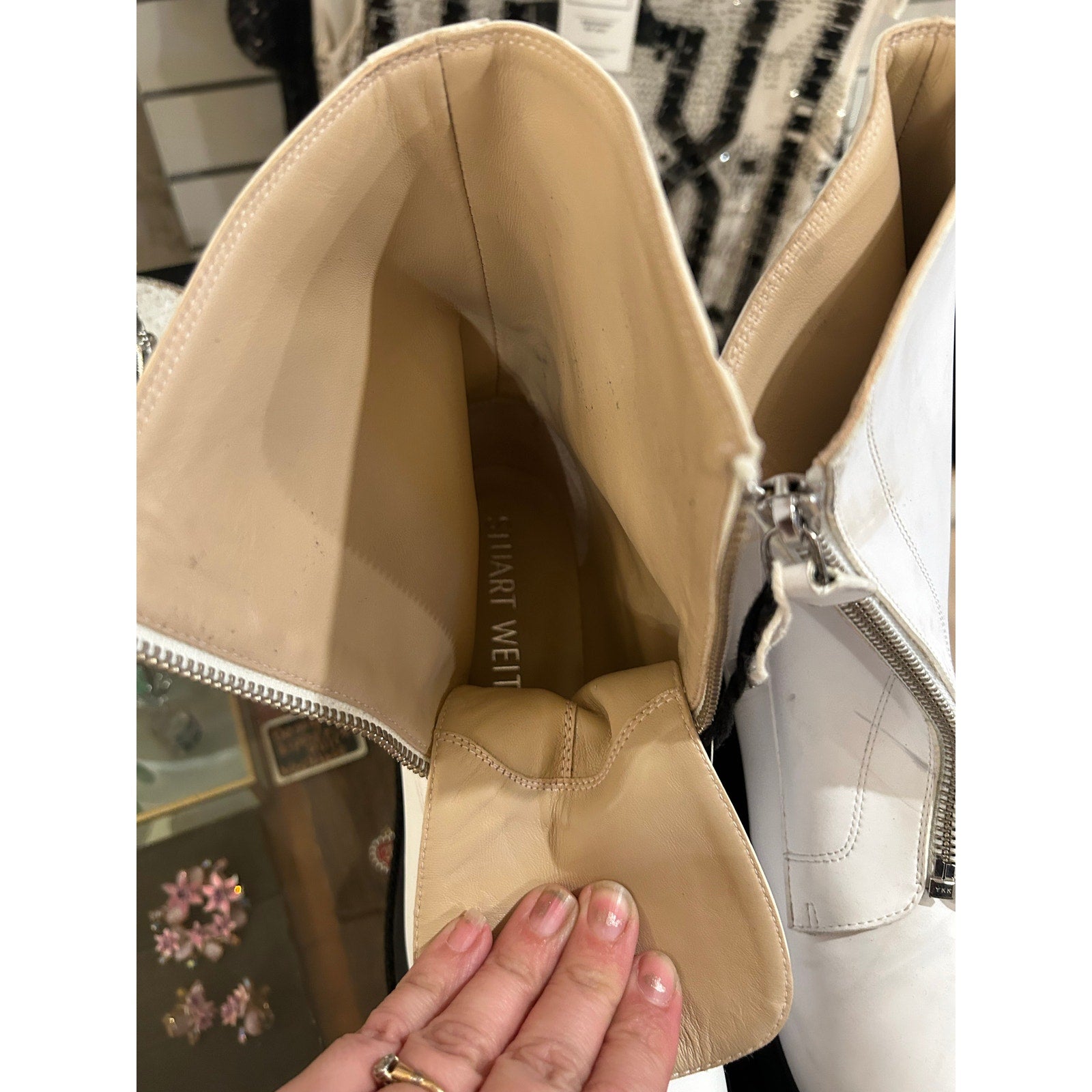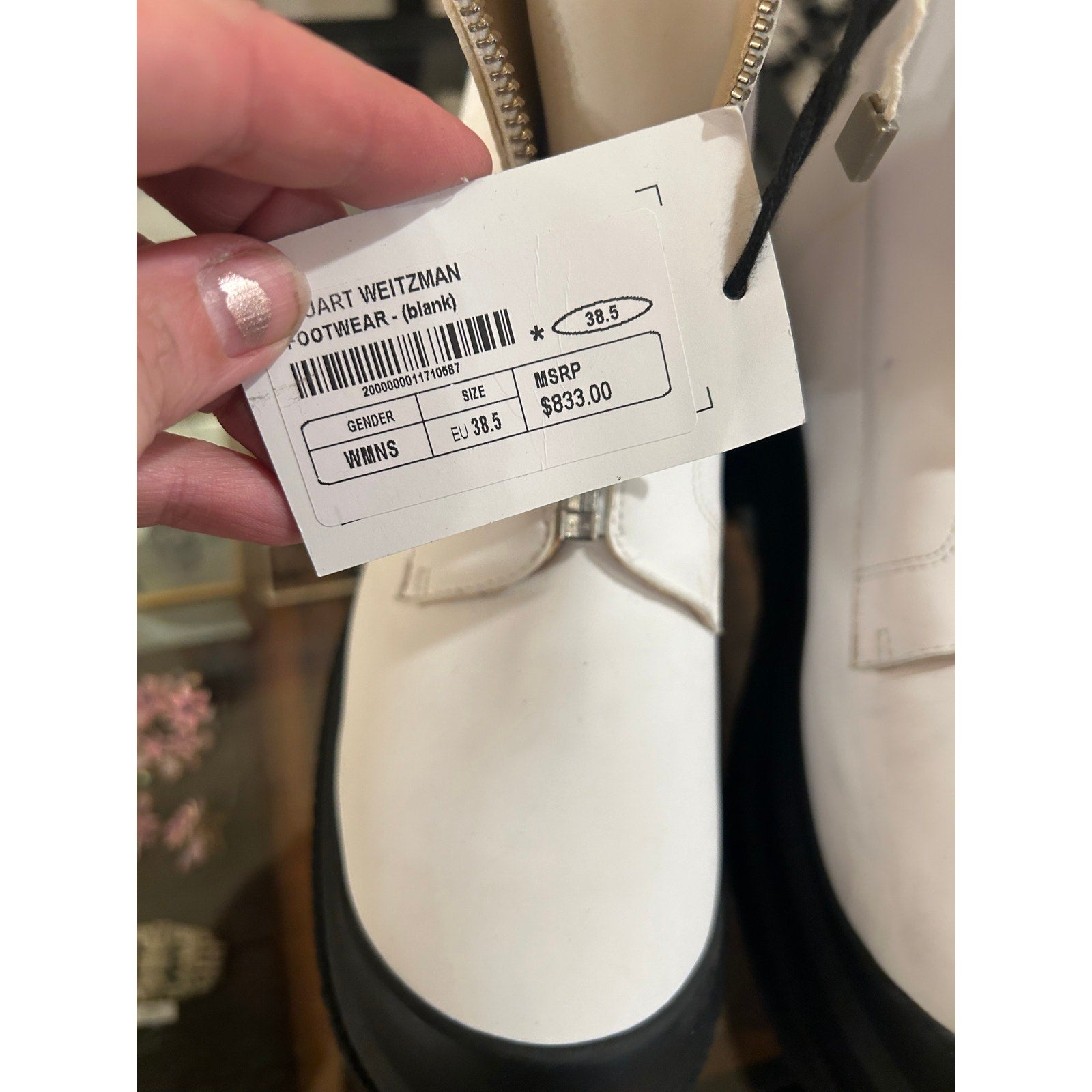 Amazing white boots from Stuart Weitzman Size 38.5 or 8.5. These boots are so cool and still have original tags on them with $833 MSRP. There are some scuffs on the boots - as shown in pictures. Discounted price reflects the scuffs.