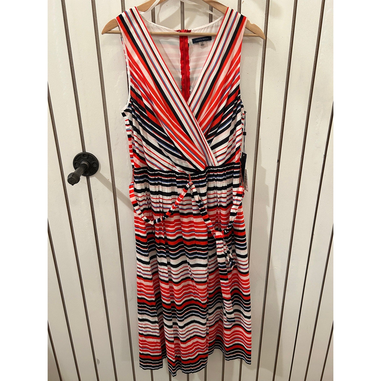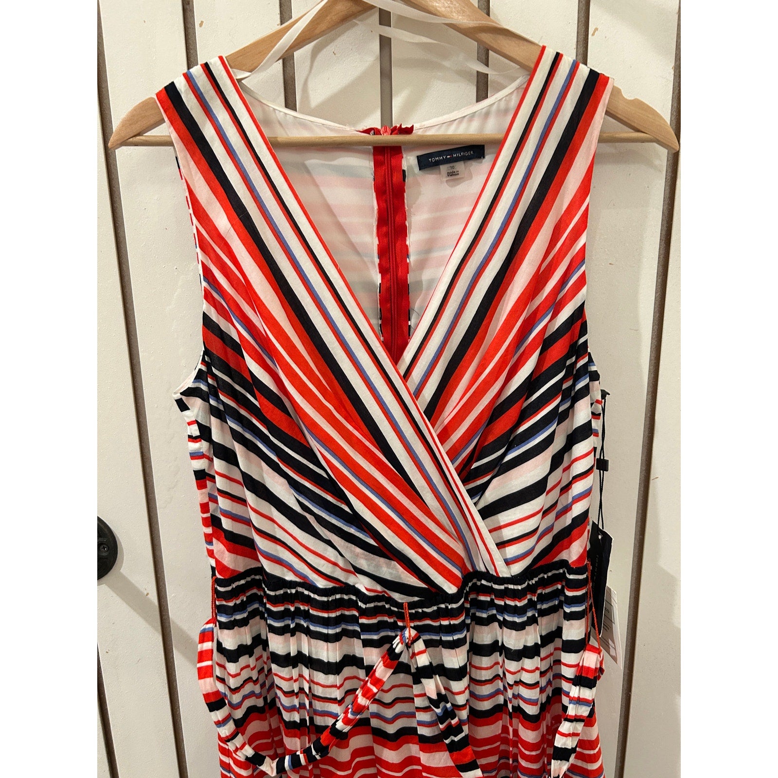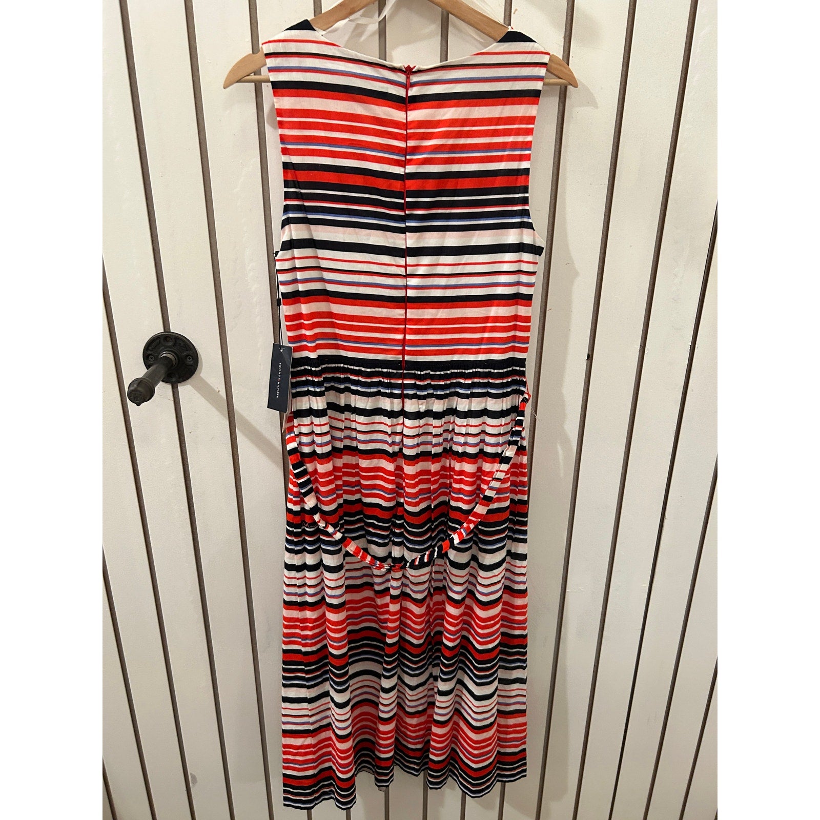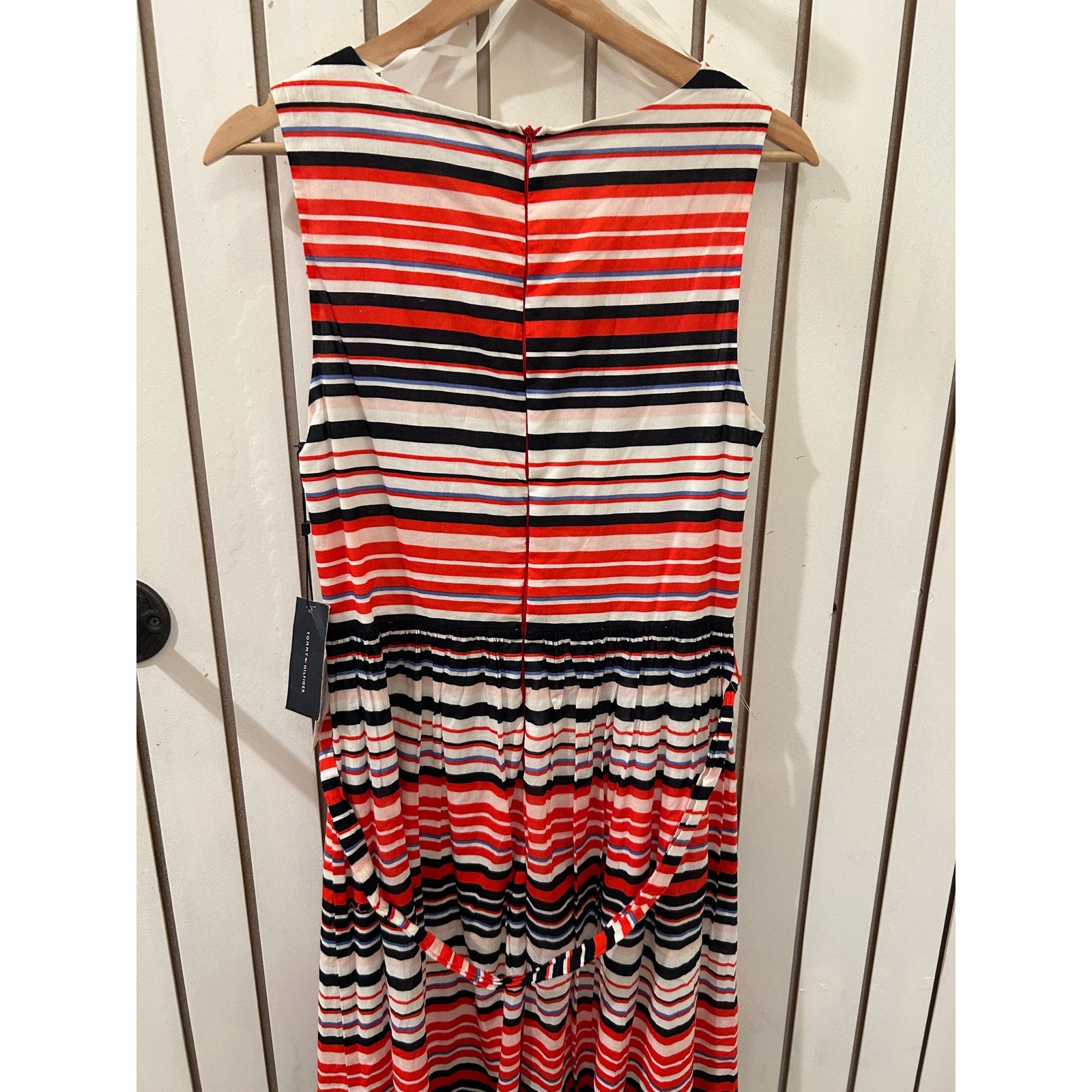 Classic and polished, this Tommy Hilfiger dress in size 10 features bold stripes in blue, red, white, and black. With its timeless design and flattering fit, it’s perfect for work, brunch, or any occasion where you want to feel confidently stylish.